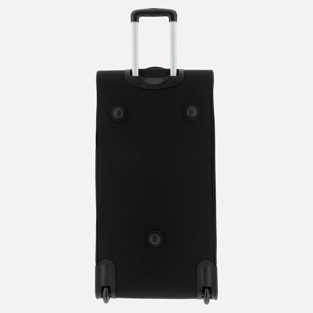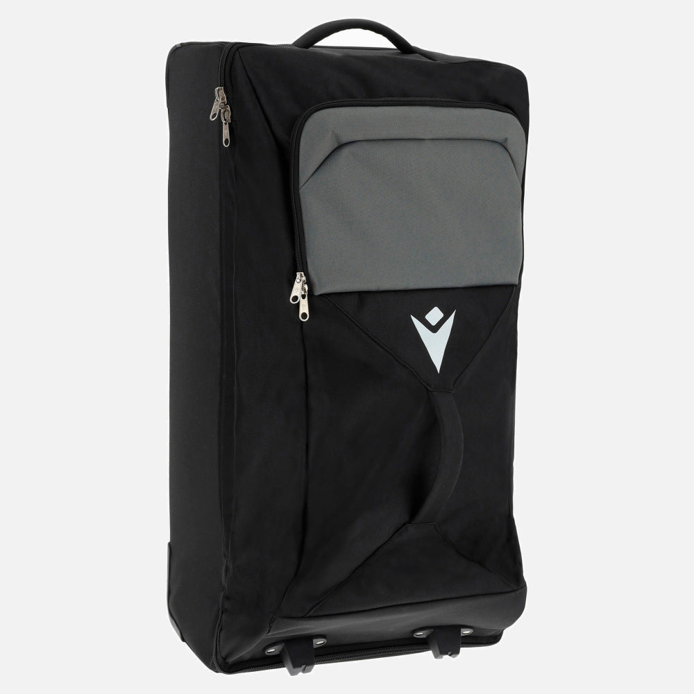 Der Trolley überzeugt durch sein funktionales Design und das ultra-beständige Polyestergewebe mit halbstarrem Boden, das Stabilität und Langlebigkeit gewährleistet. Ein einziehbarer Griff sowie zwei Rollen ermöglichen ein komfortables Ziehen, während zwei Standfüße sicheren Halt in vertikaler Position bieten. Verstellbare seitliche Schnallen sorgen für zusätzliche Fixierung des Inhalts. Ein vorderer Griff erlaubt das horizontale Tragen oder Ziehen.